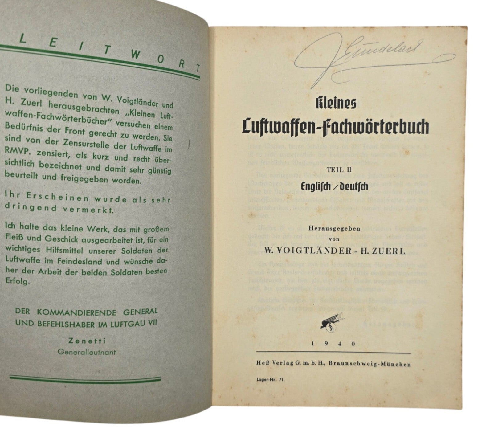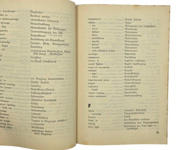 Original WW2 German Brochure - Luftwaffen Fachwörterbuch Teil II Englisch Deutsch, Voigtländer (1940)