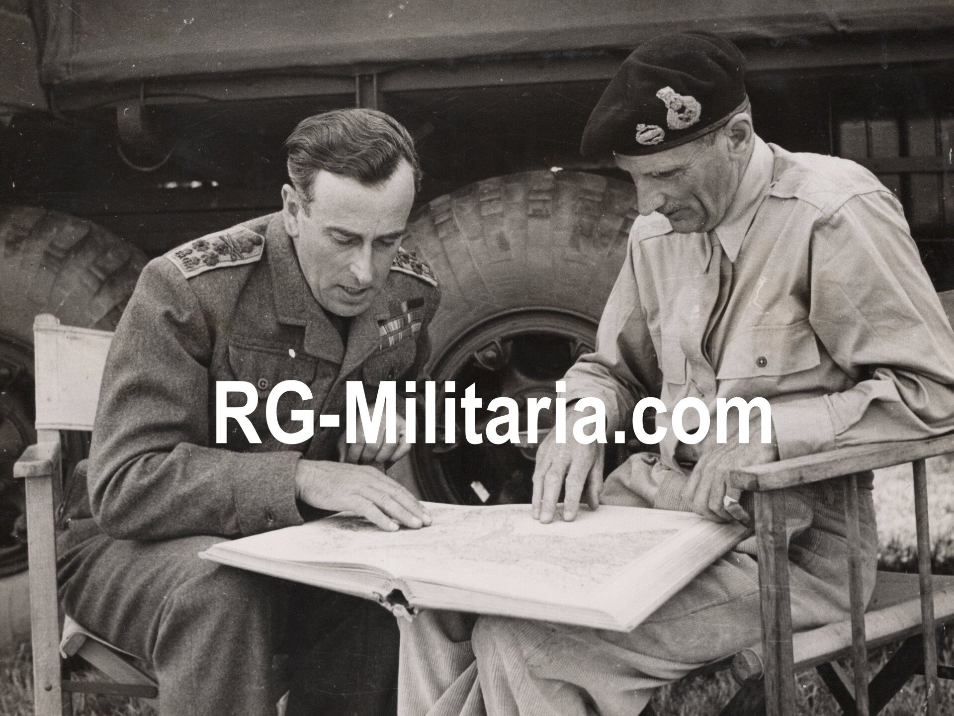 Originele Wo2 Britse Persfoto - Admiral Lord Louis Mountbatten with General Montgomery in Normandy, France, Operation Overlord (1944)