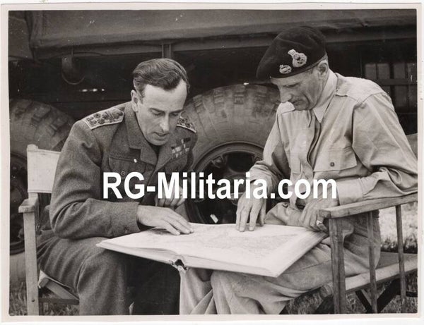Original WW2 British Press Photo - Admiral Lord Louis Mountbatten with General Montgomery in Normandy, France, Operation Overlord (1944)