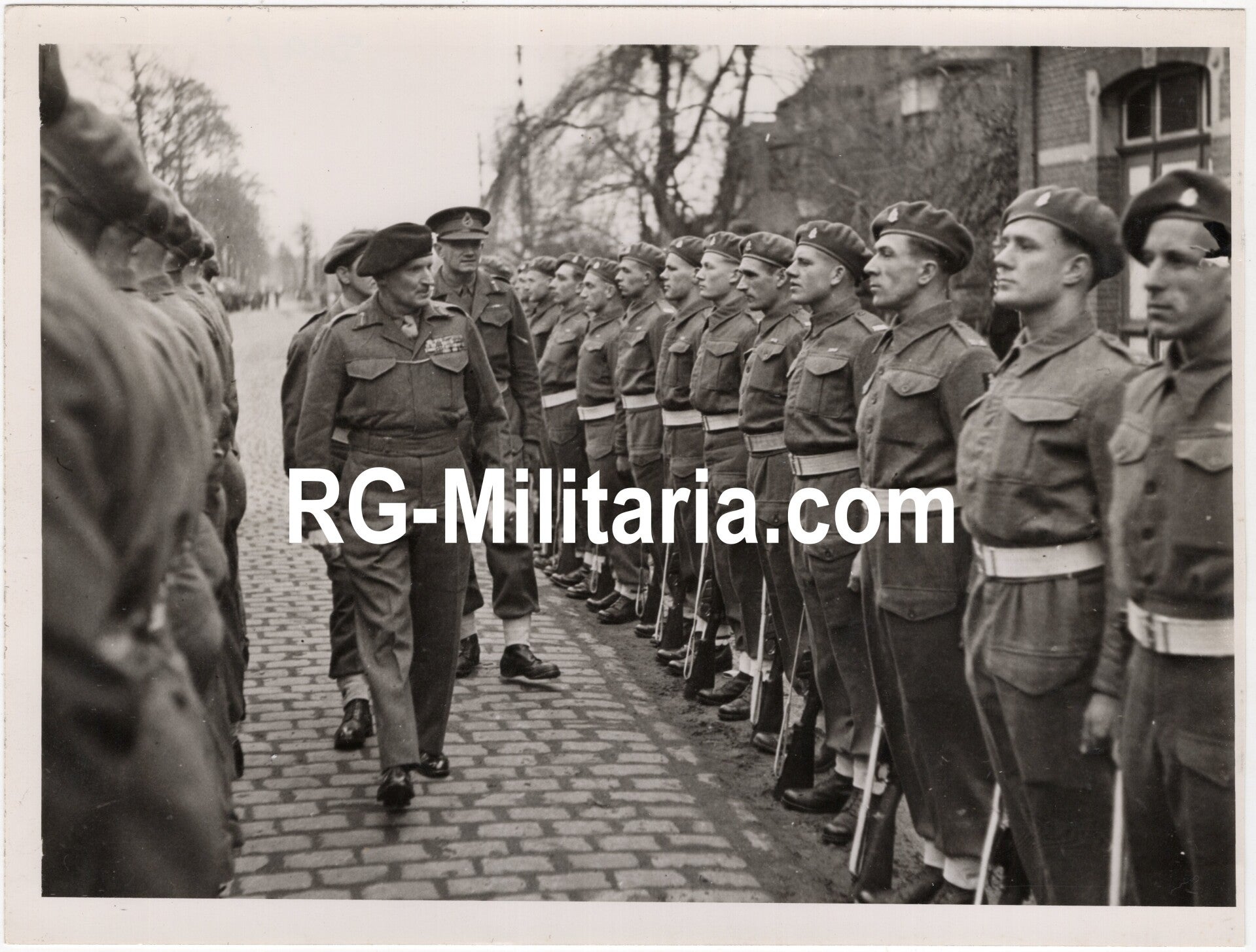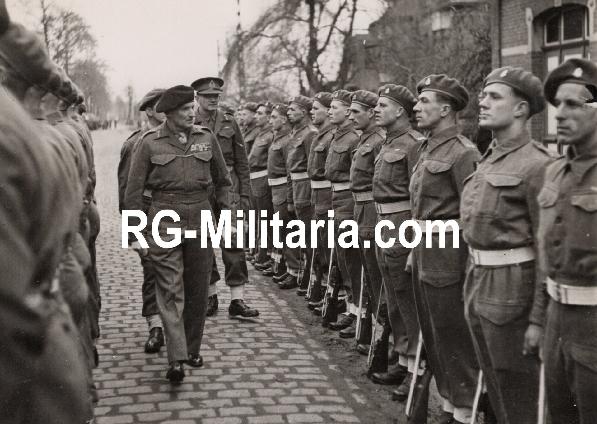 Original WW2 British Press Photo - General Montgomery inspecting the Desert Rats, Germany (1945)