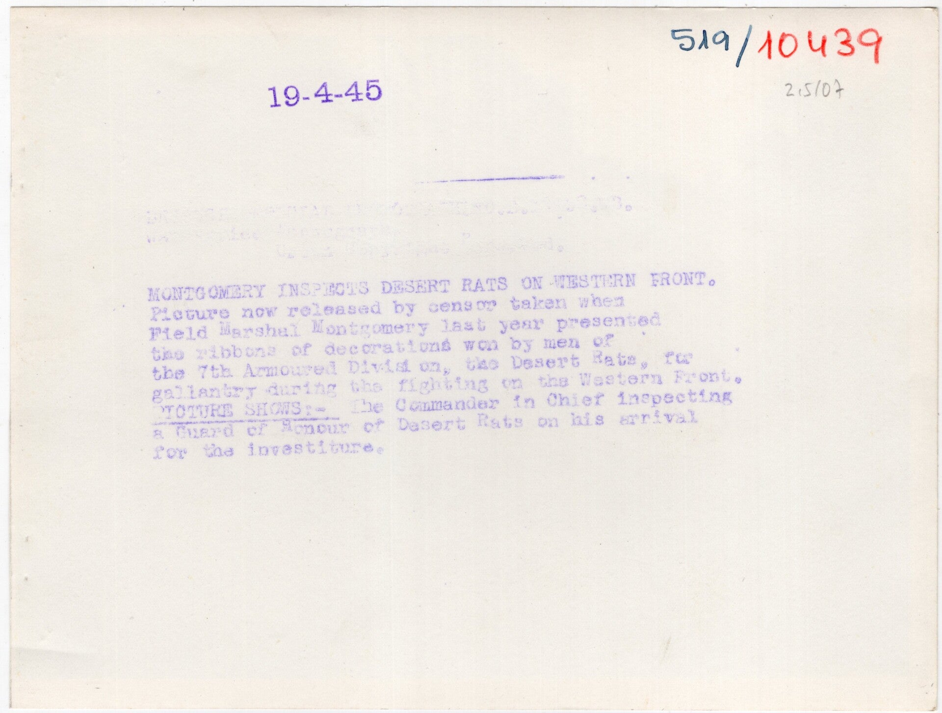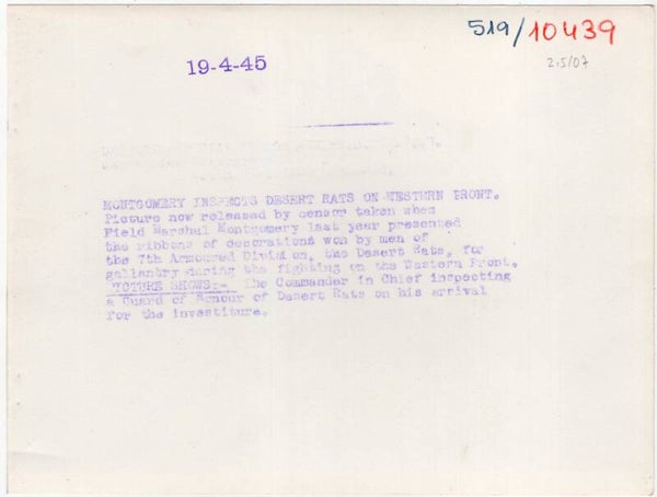 Originele Wo2 Britse Persfoto - General Montgomery inspecteert de Desert Rats, Duitsland (1945)