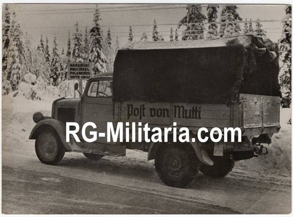 Originele Wo2 Duitse Persfoto - NSKK Feldpostwagen ''Post von Mutti'' Eismeerfront