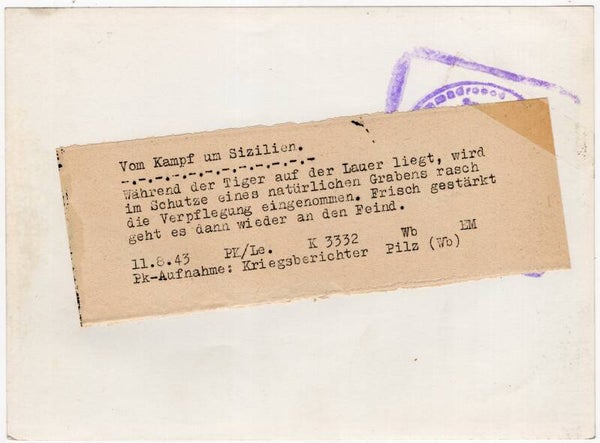 Original WW2 German Press Photo - German Panzer Tank Sturmhaubitze in Sicily, Italy (1943)