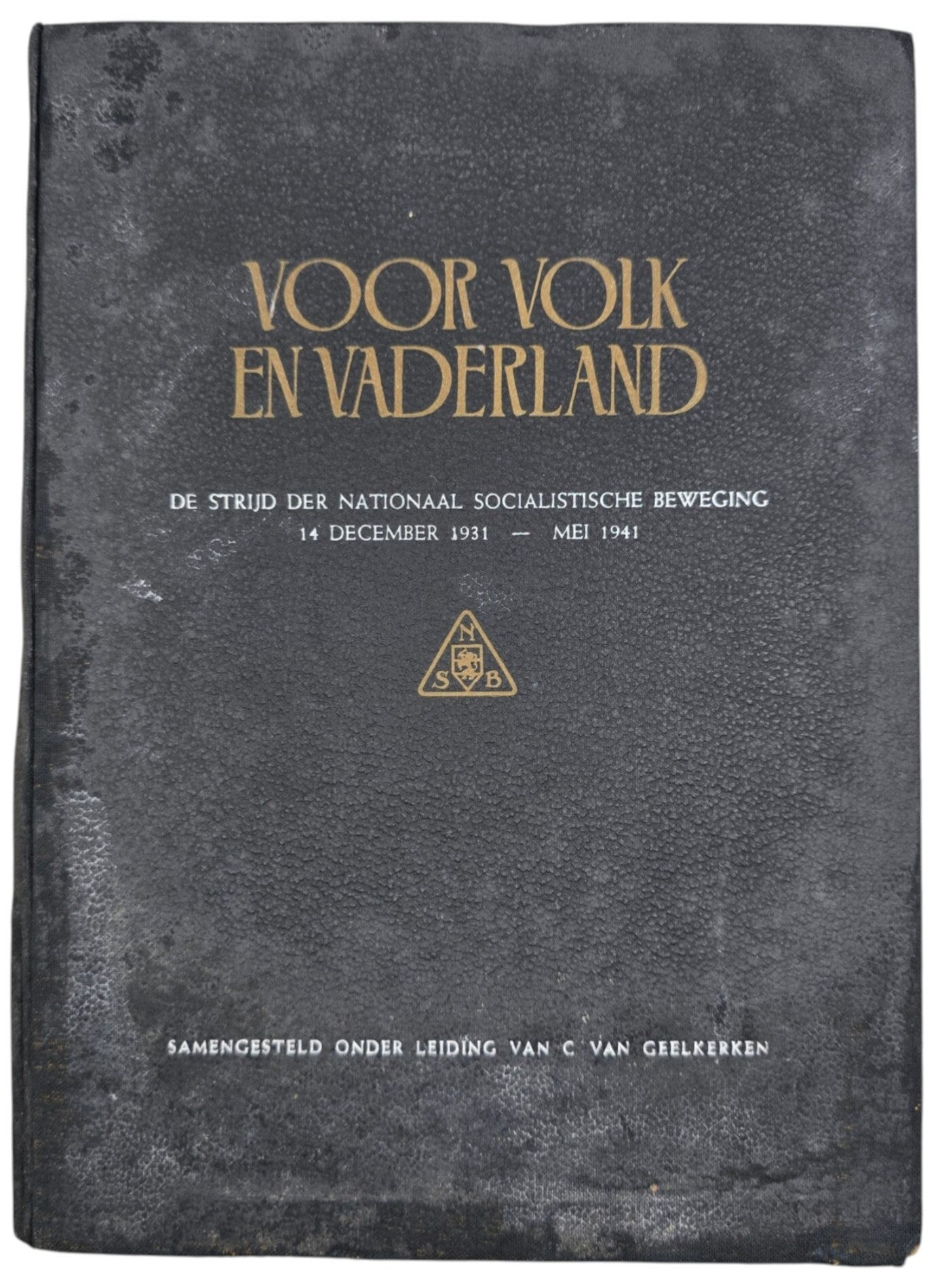 Original WW2 Dutch Collaboration NSB Book - Voor Volk en Vaderland, rare black leather edition with dustcover (1941)