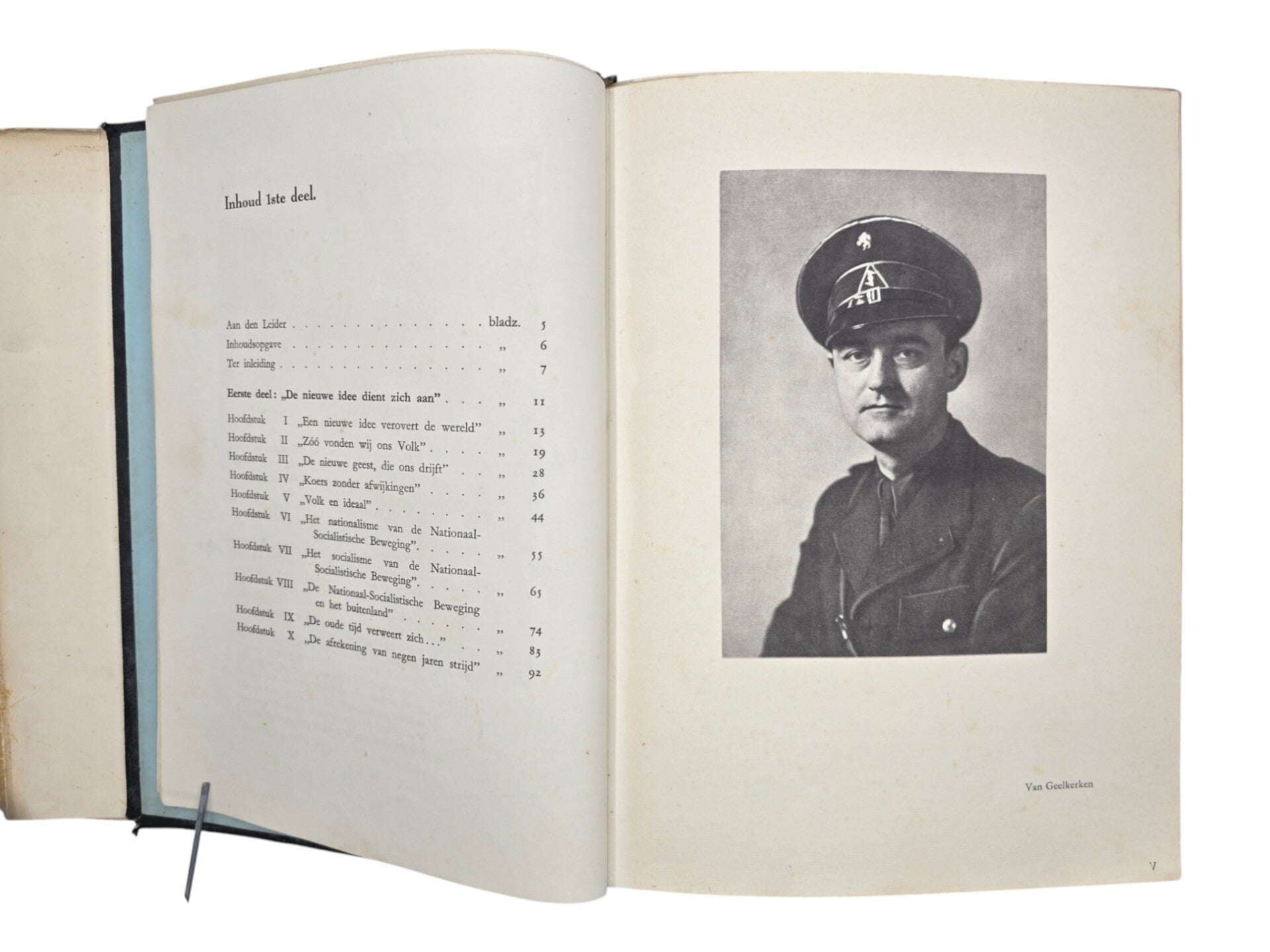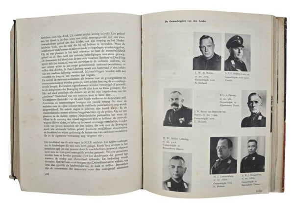Van NSB-uitgever NENASU. Dit is het NSB-jubileumboek ter ere van het 10-jarig bestaan. Het betreft een zeldzaam verkrijgbare luxe zwartleren editie. De tekst binnenin is identiek aan de normale uitgave. Het boek is beschadigd. De stofomslag is met zuurvrije tape gerepareerd.