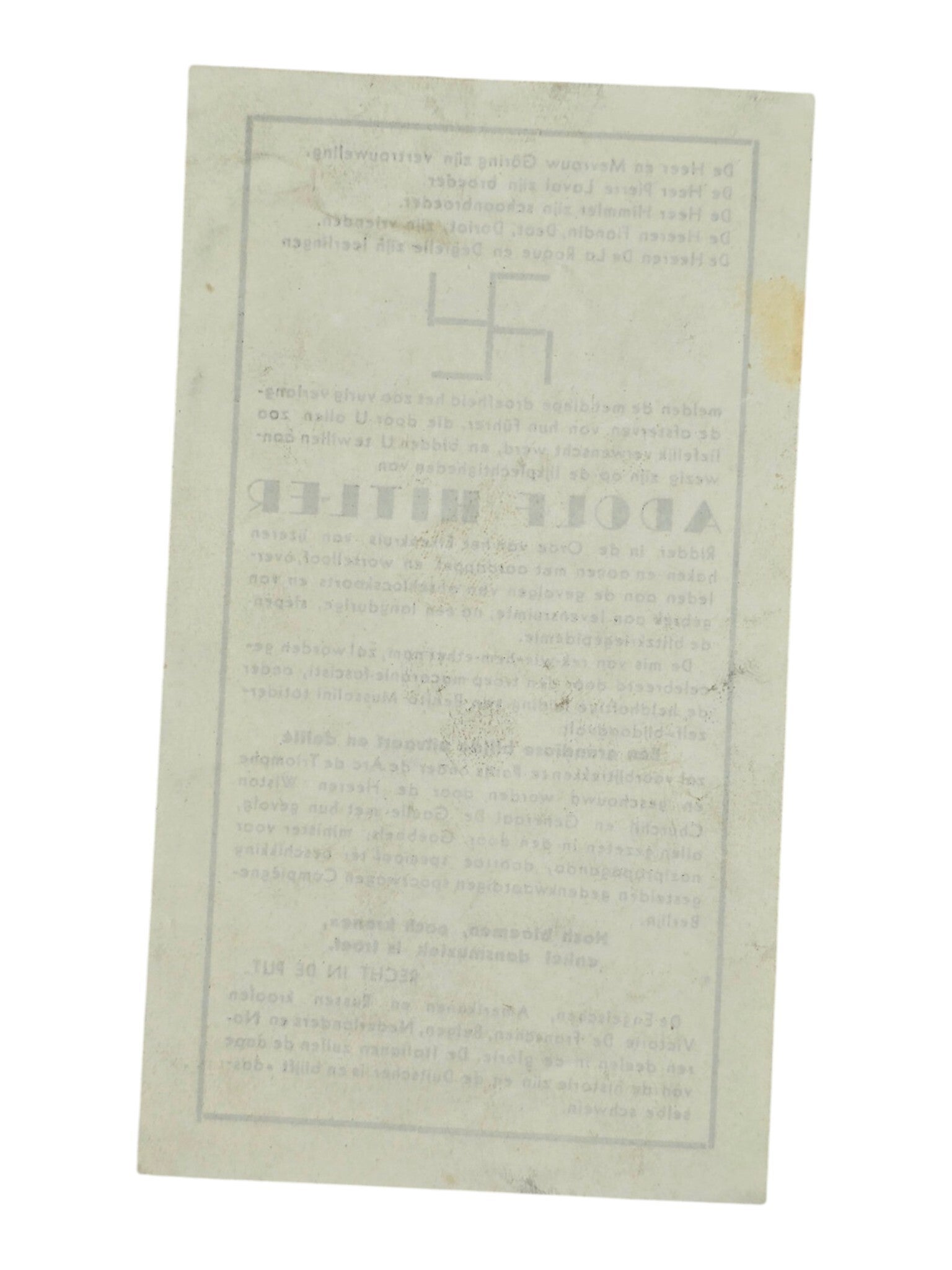Original WW2 Belgian Liberation Document - Satirical Death Card Adolf Hitler (1945)