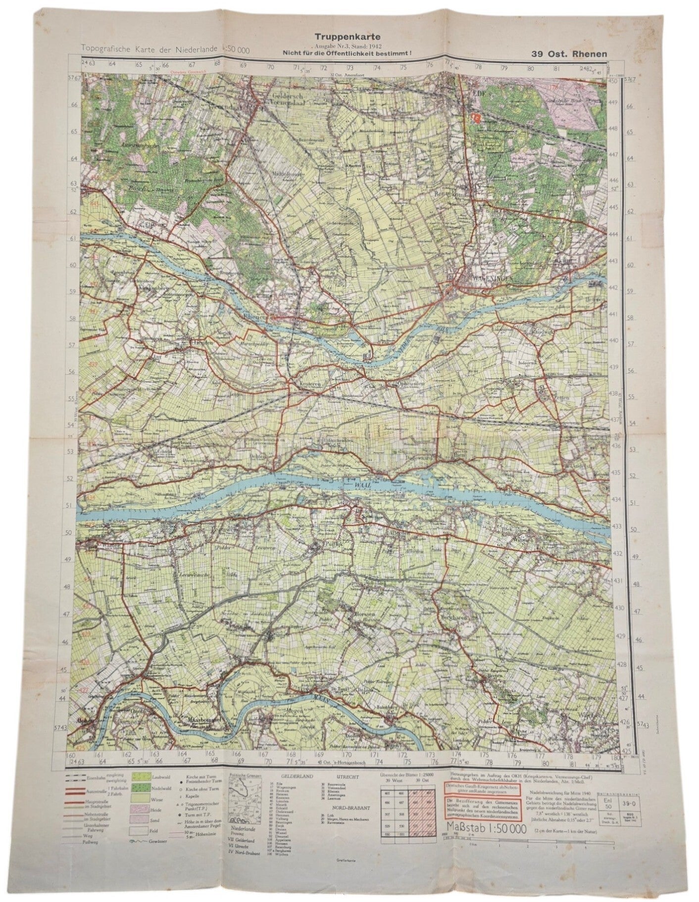 Originele Wo2 Duitse Kaart - Truppenkarte Ost Rhenen (1943)