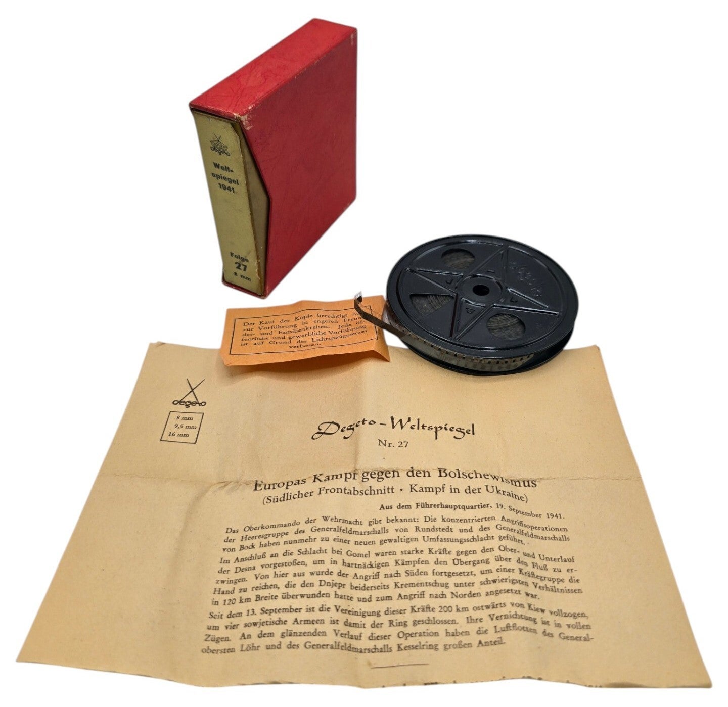 Original 8mm film spool in box by Degeto Weltspiegel. The box is in good condition. Comes with the letter, Südlicher Frontabschnitt, Kampf in der Ukraine.