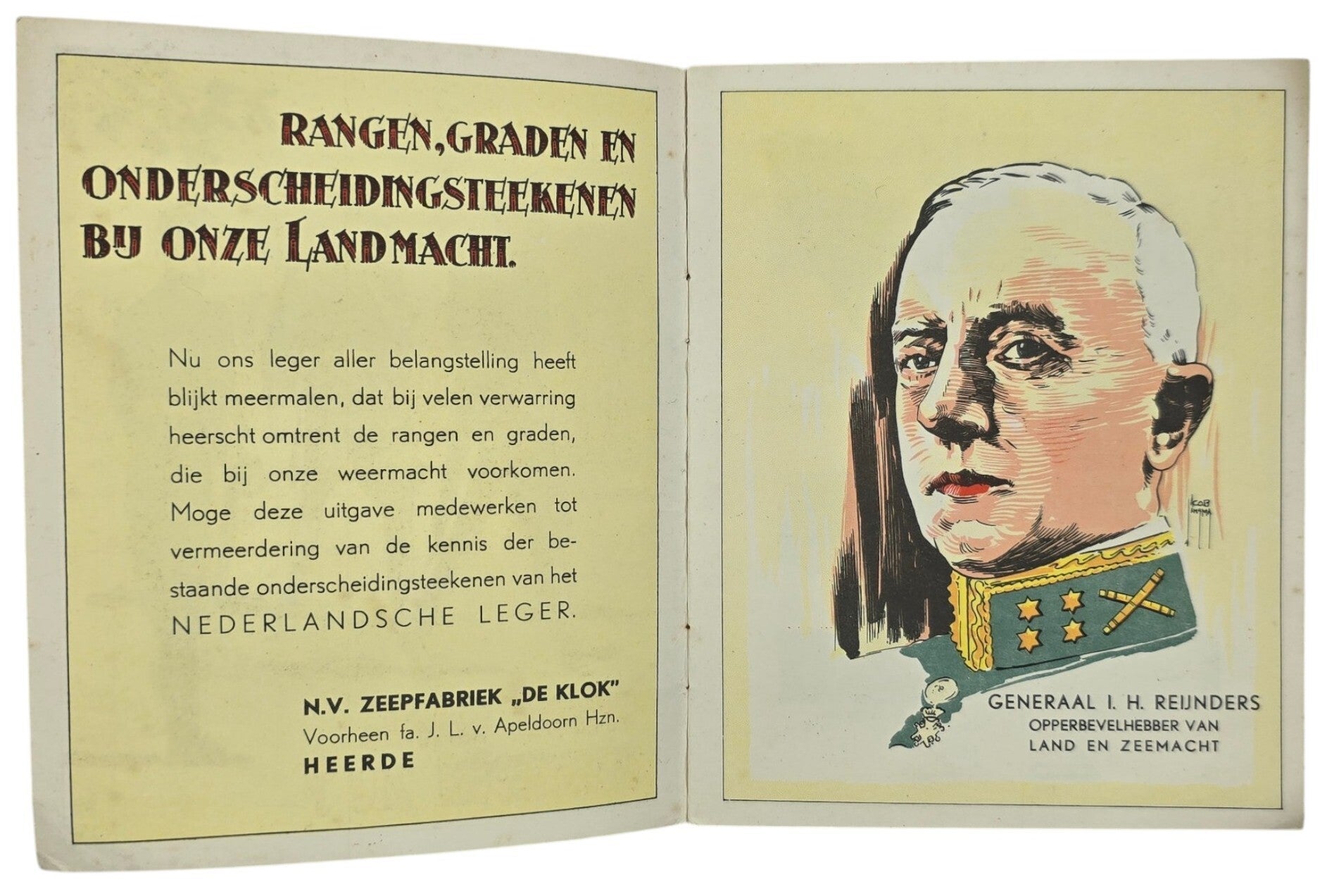 Original WW2 Dutch Brochure - Dutch Army "Welke rang bekleeden zij?'' N.V. Zeepfabriek De Klok, Heerde (1940)