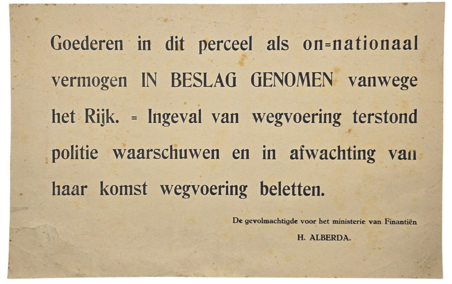 Originele Wo2 Nederlandse Poster - On nationaal vermogen in beslag genomen vanwege het Rijk, H. Alberda (1945)