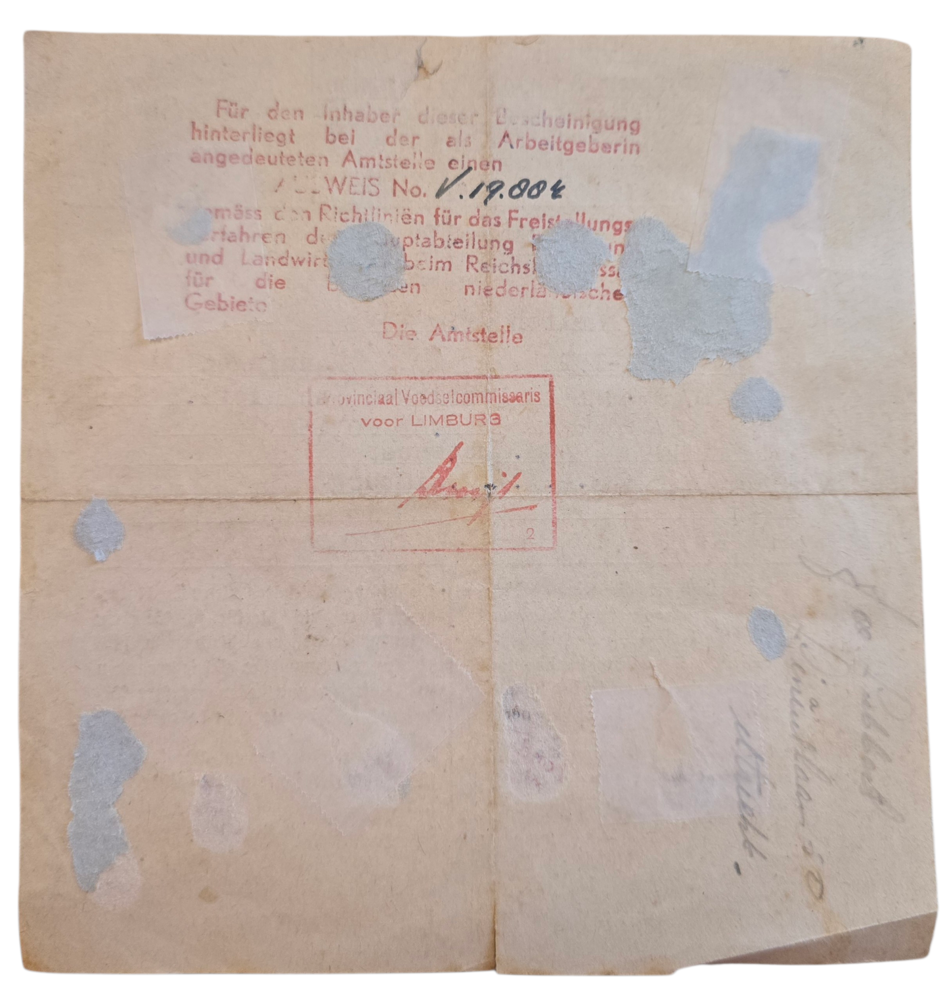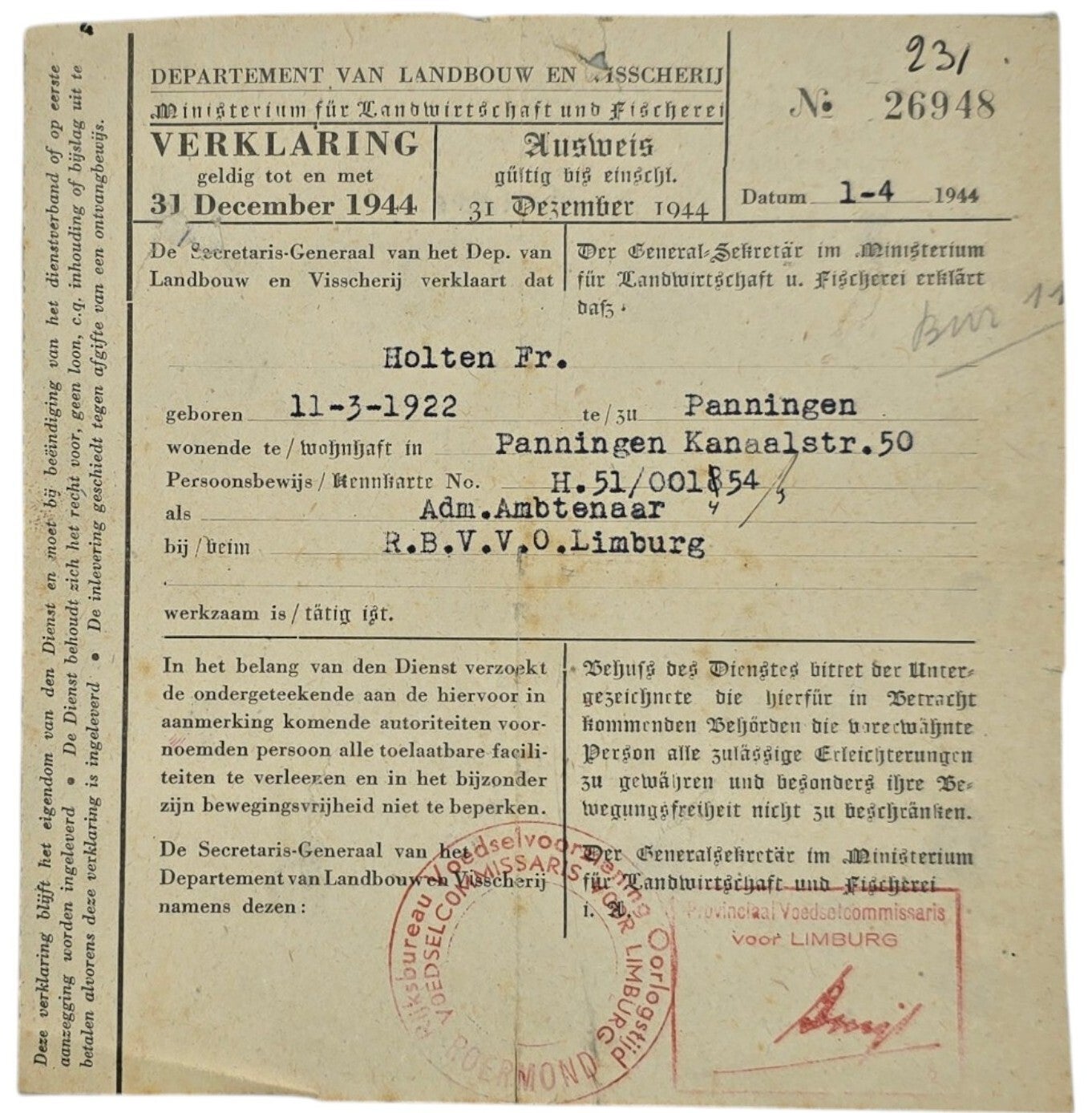 Original WW2 Dutch Document - Ausweis Panningen Limburg (1944)