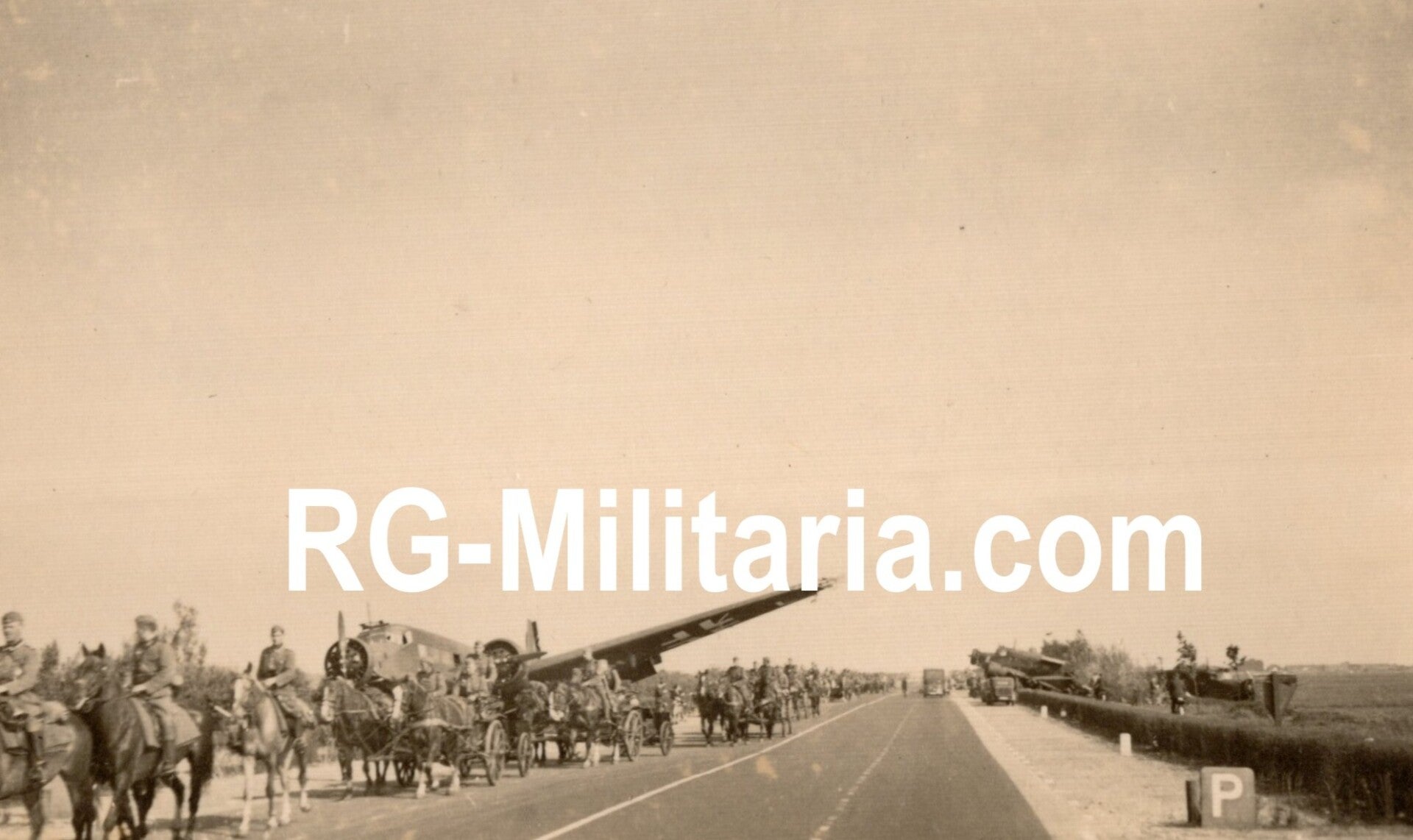 Originele Wo2 Duitse Foto - Rijksweg bij Delft met gelande Junkers JU 52-vliegtuig, Blitzkrieg mei, Nederland (1940)