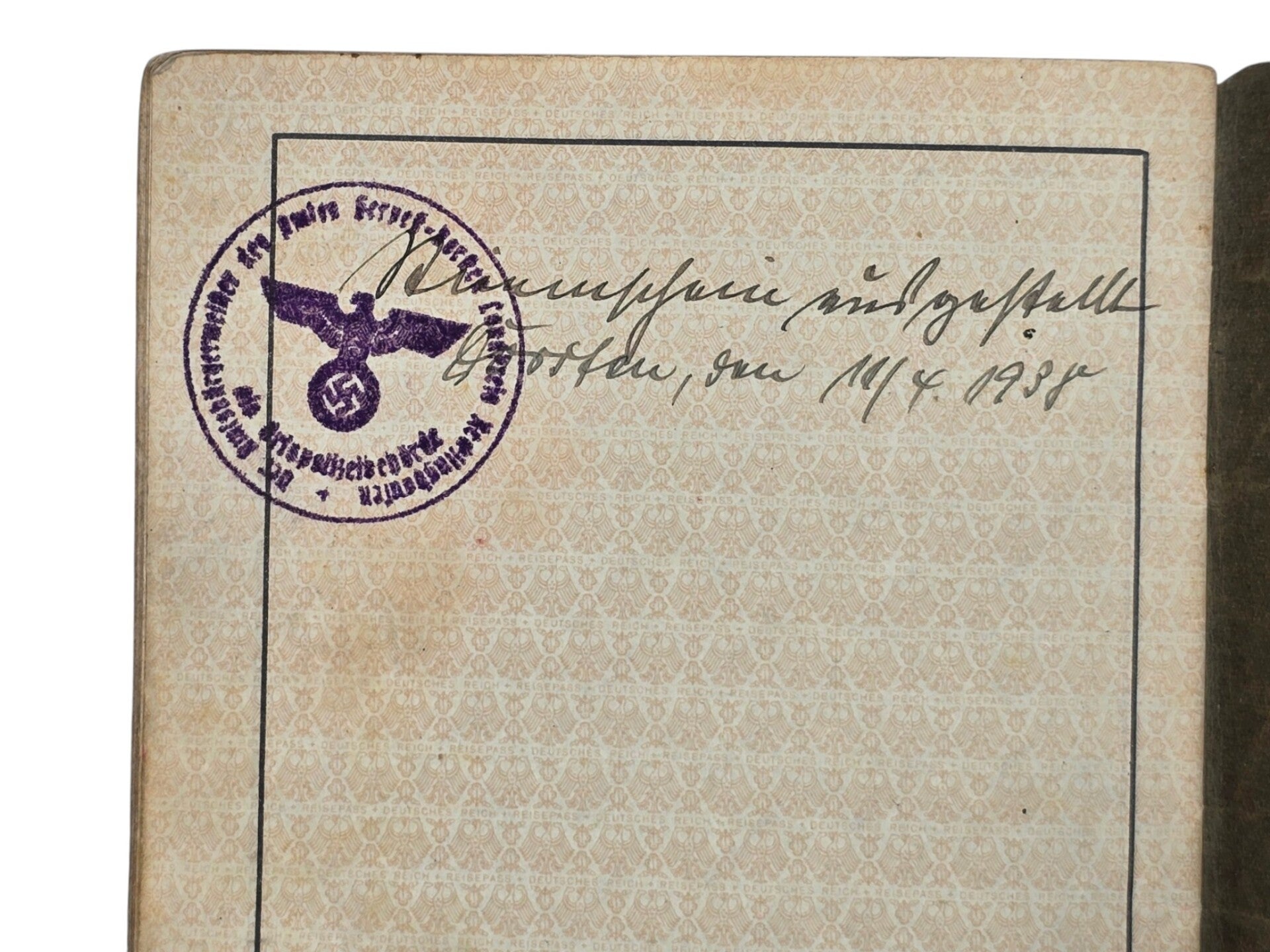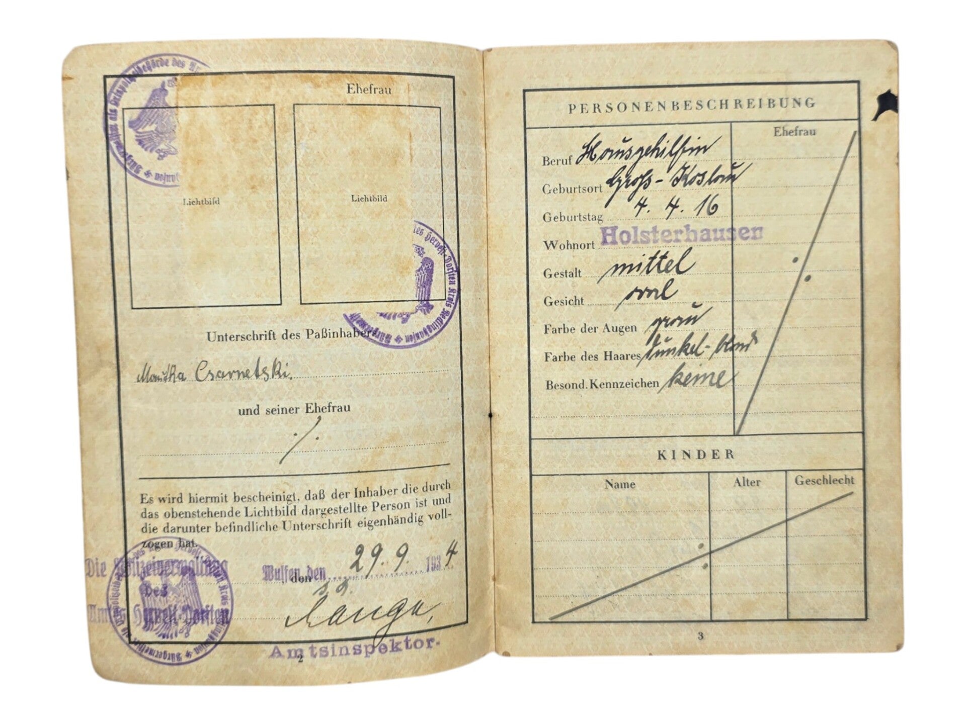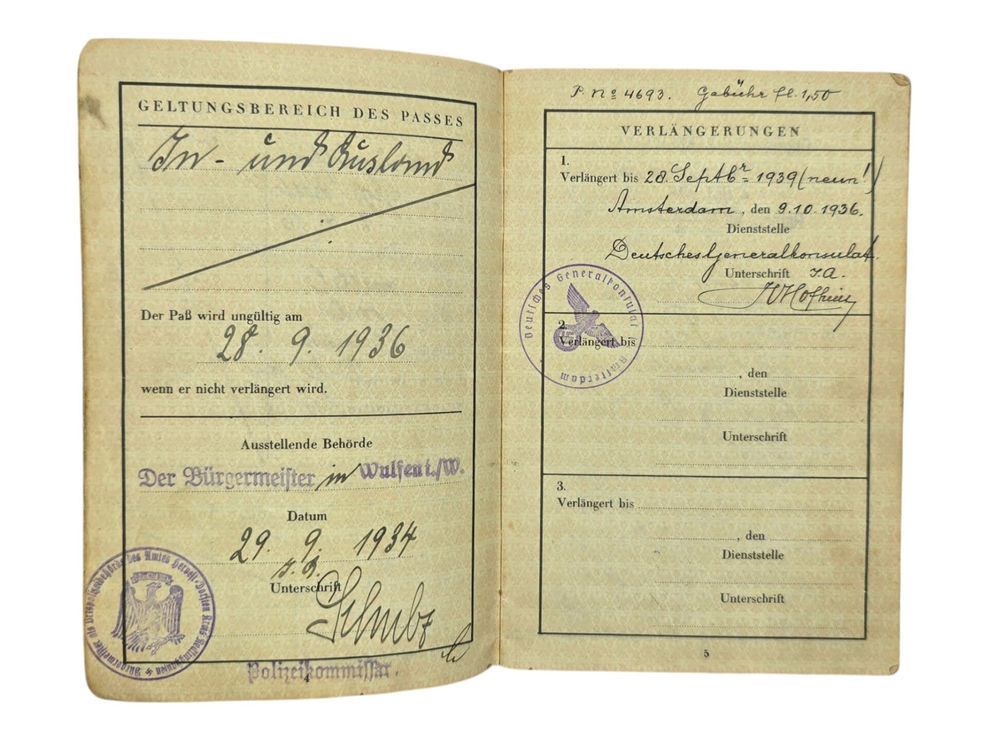 Original WW2 German Document - Deutsches Reich Reisepass Holsterhausen, Haarlem, Zandvoort, Heemstede (1939)