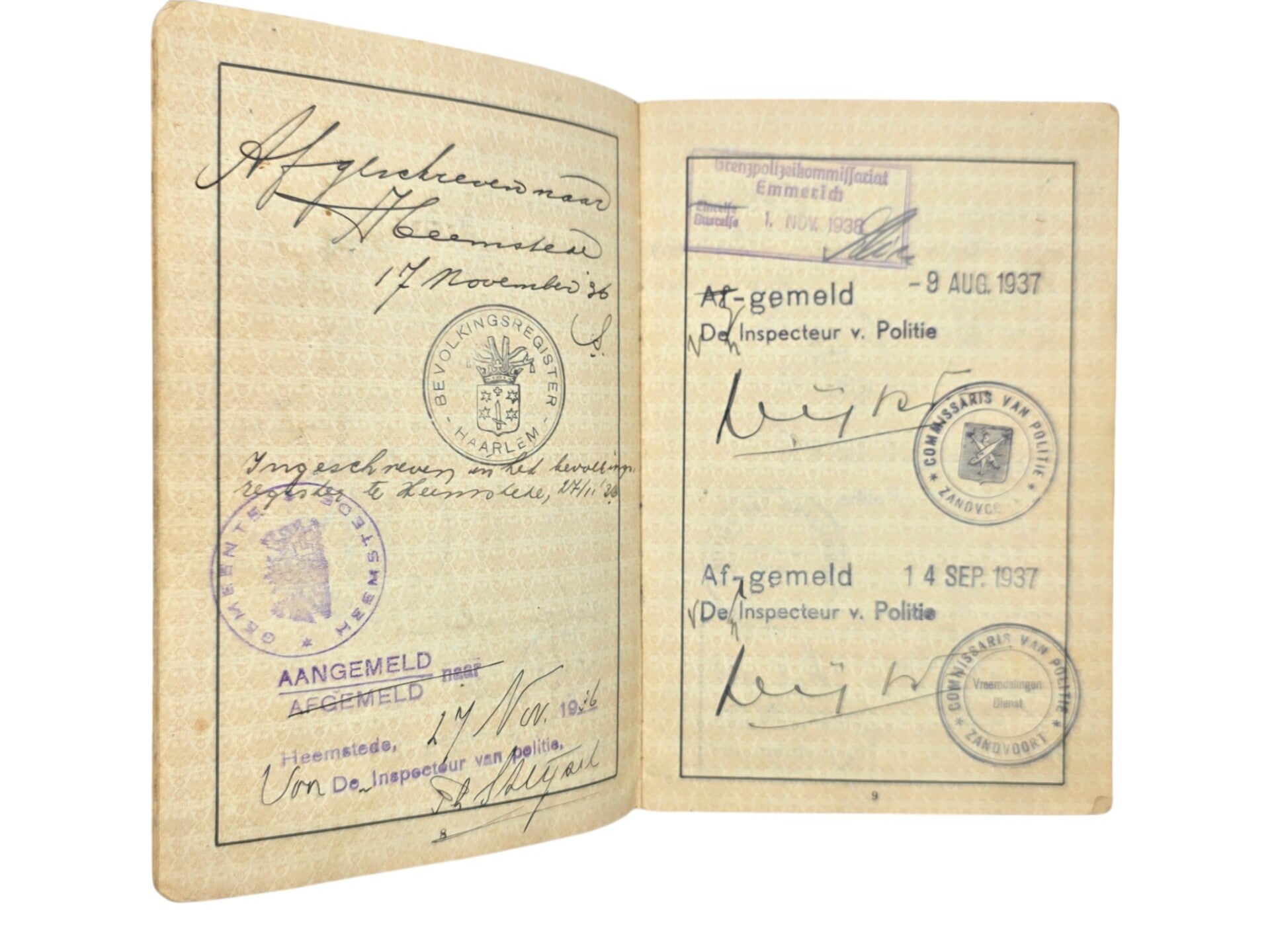 Originele Wo2 Duits Document - Deutsches Reich Reisepass, Holsterhausen, Haarlem, Zandvoort, Heemstede (1939)