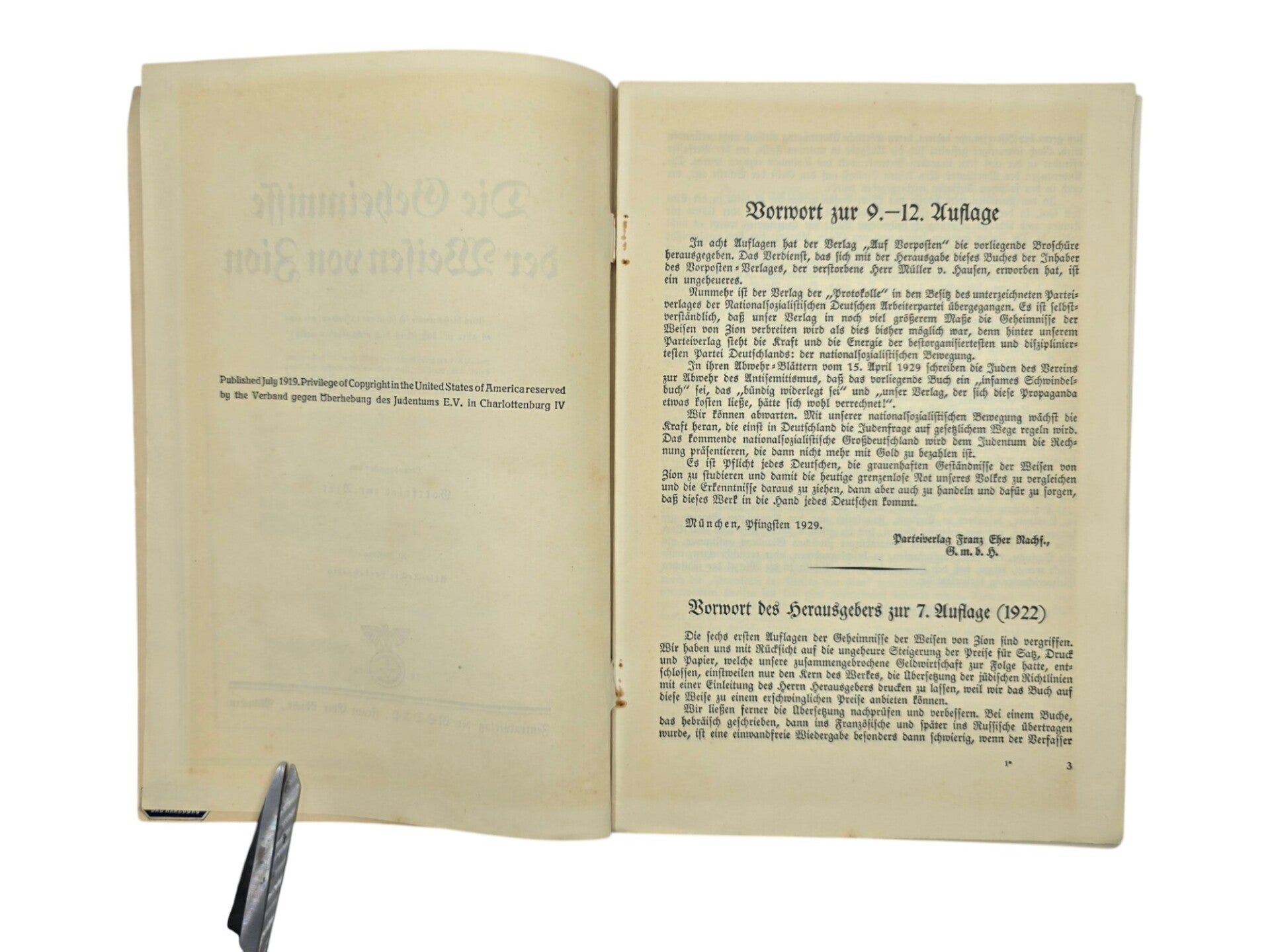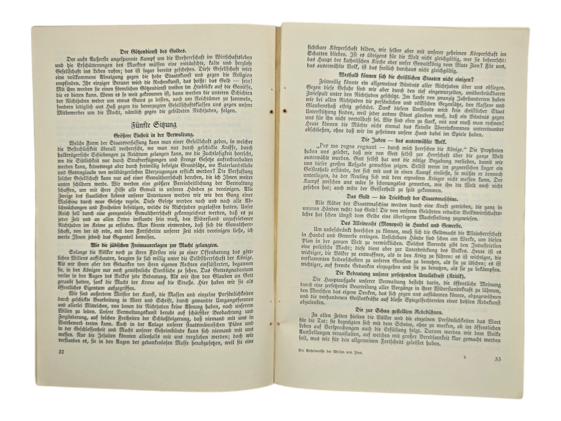 Original WW2 German Antisemitic Brochure - Die Geheimnisse der Weisen von Zion, Gottfried zur Beek with rare add-on (1935)