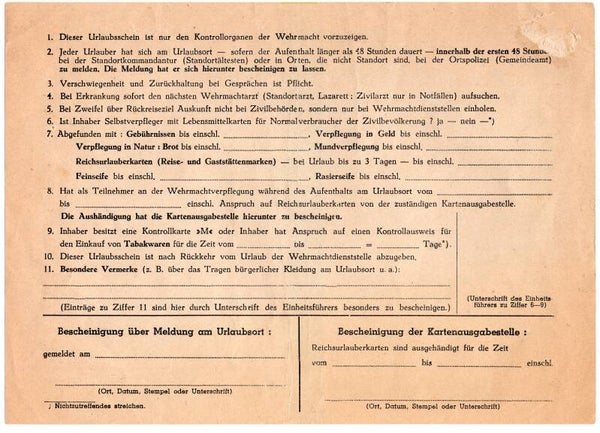 Oningevulde Kriegsurlaubsschein gedrukt in Brussel.