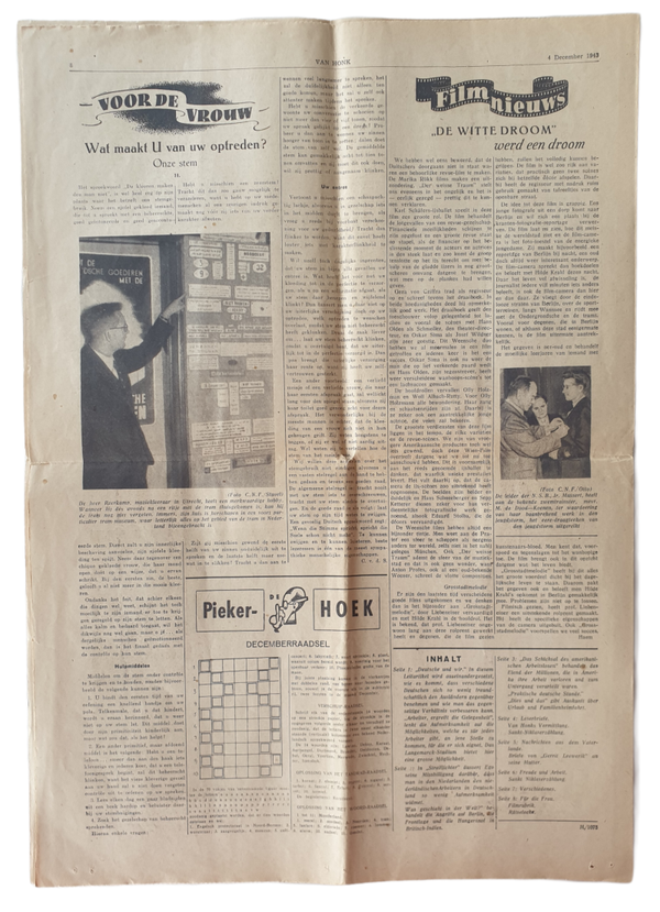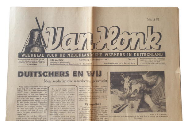 Dutch newspaper - Van Honk ''Weekly for the Dutch workers in Germany'' Nr. 48. Issue from the 4th of December 1943.