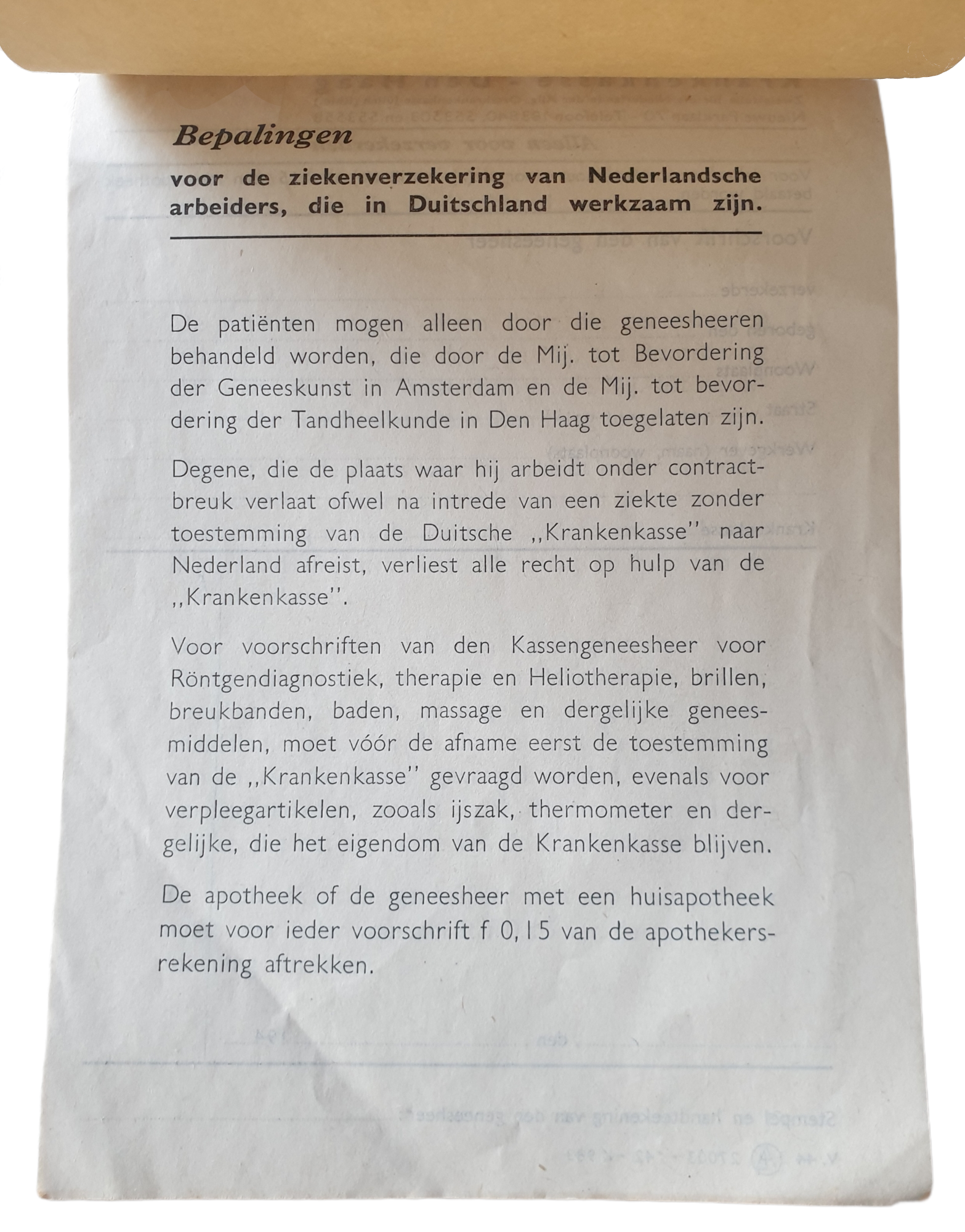 Ongebruikt Krankenkasse boekje Den Haag uit 1942.