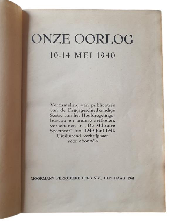 Book - Onze oorlog 10-14 mei 1940 from 1941. This book is about the Dutch German war in 1940.