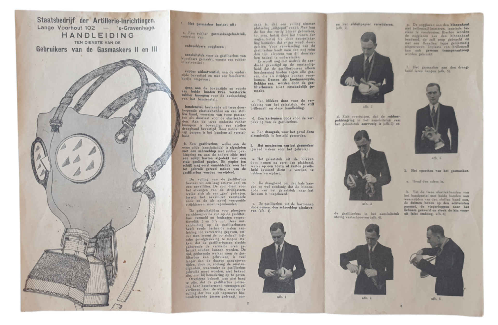Handleinding ten dienste van de gebruikers van de Gasmaskers II en III door het Staatsbedrijf der Artillerie-Inrichtingen.