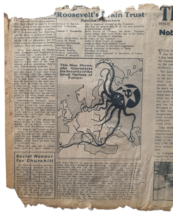 Duits pamflet voor Engeland ''The Other Side number 6''. Dit pamflet is afgeschoten met een V1 naar Engeland. Zeer fragiel.