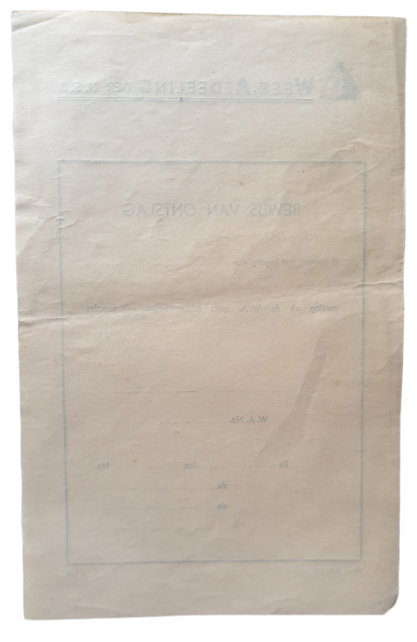 Unissued NSB Weer-Afdeeling WA discharge document