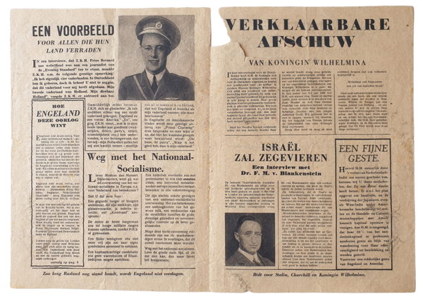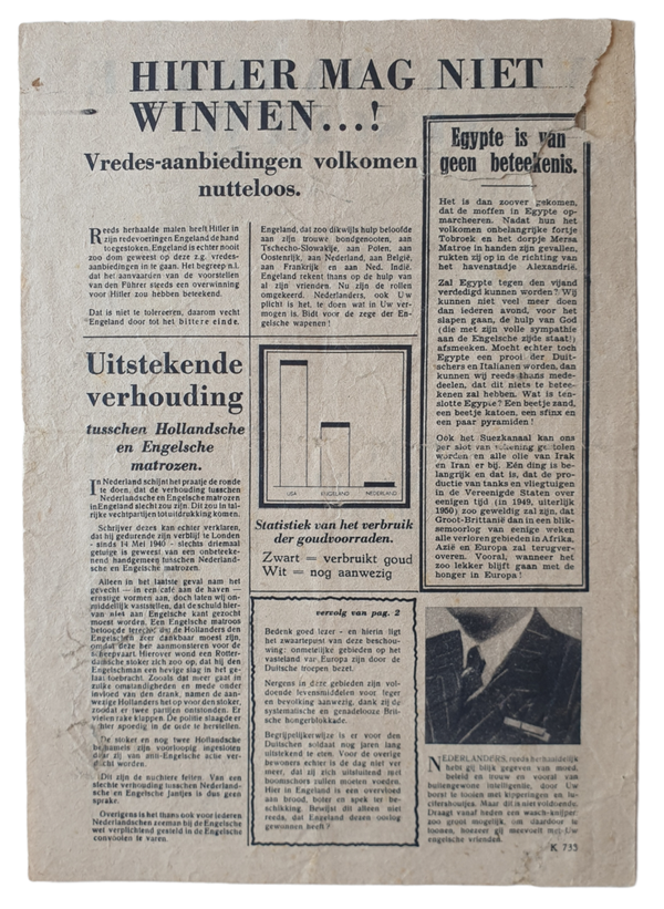 Dutch propagandaflyer ''Groeten uit Engeland''. This flyer was designed to look like the British leaflet Luftpost or Luchtpost in Dutch. At first it looks like allied propaganda, until you read the text.