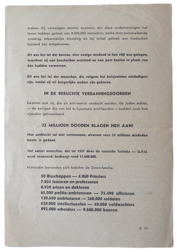 Anti communist/bolsjewist NSB flyer ''Bolsjewistische Massa-moord''