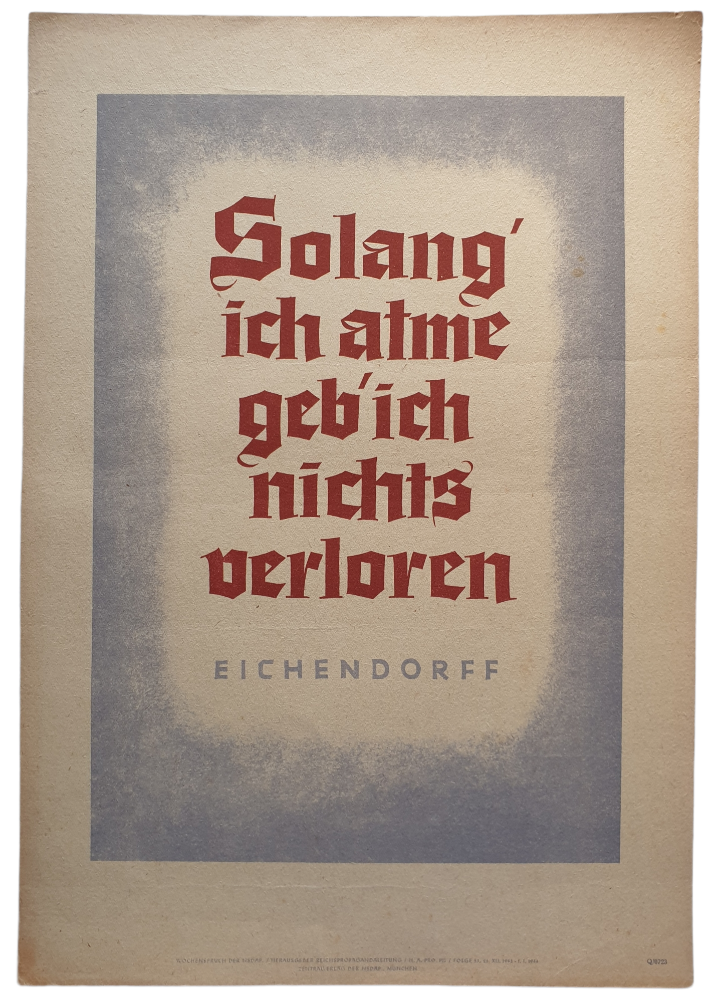NSDAP Wochenspruch 1943 folge 53. door Eichendorff. ''Solang ich atme geb ich nichts verloren.''