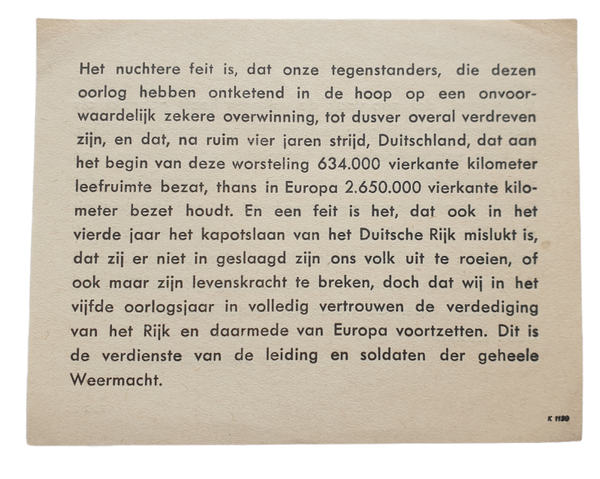 Flyer - ''Führerrede Neujahr 1944'' in Dutch