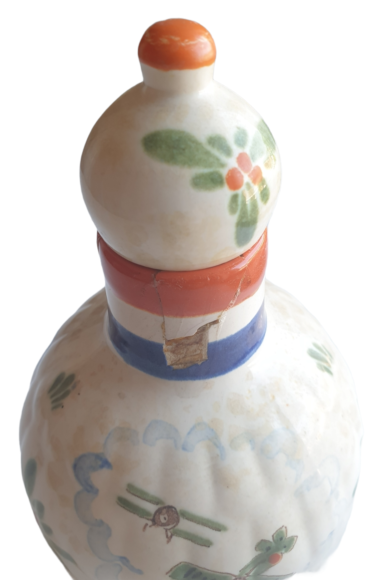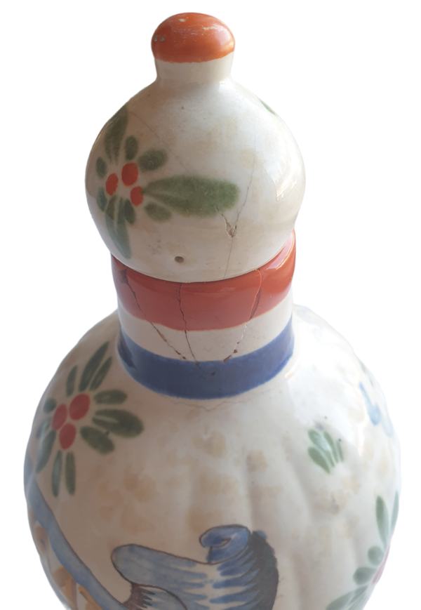 De nek en de dop zijn gebroken en gerepareerd. Licht zichtbaar op de voorkant.