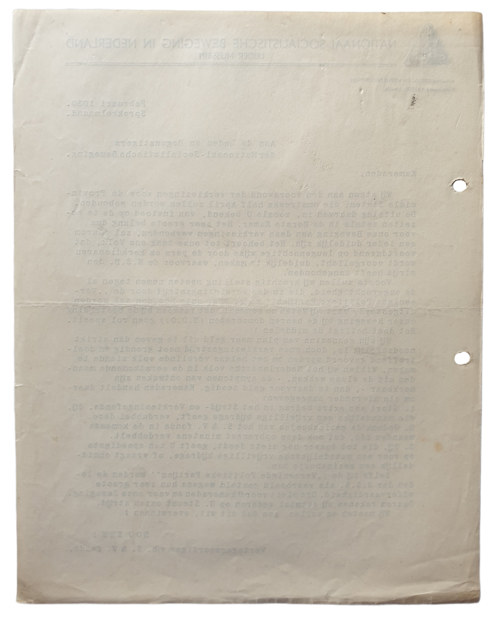 NSB letter - ''Strijd- en Verkiezingsfonds'' asking the NSB members to donate to the NSB from February 1939
