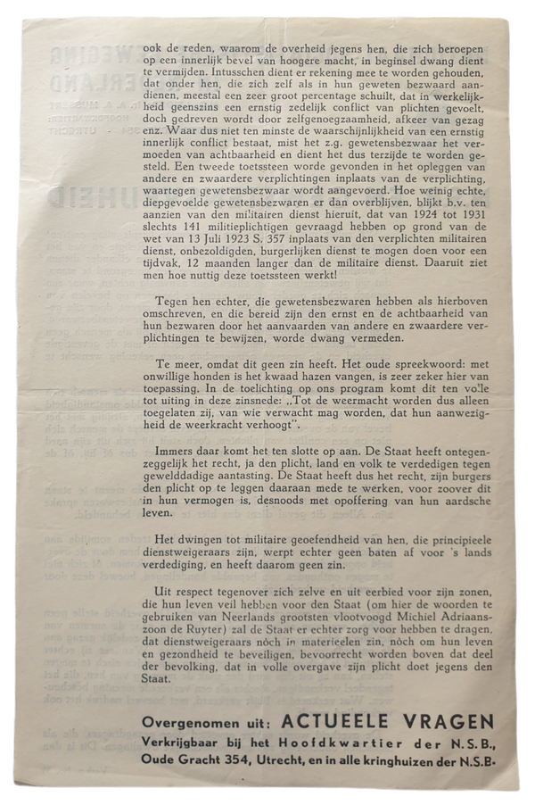 NSB flyer - ''NSB en Gewetensvrijheid''