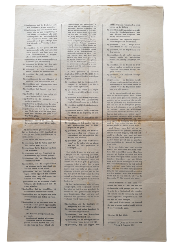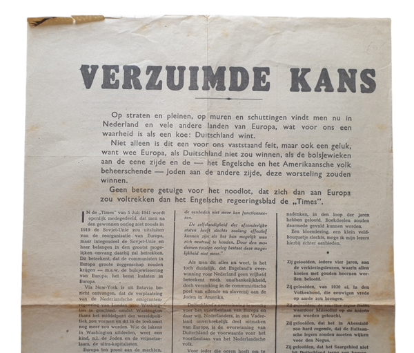 NSB flyer - ''Verzuimde kans'', overdruk van de Volk en Vaderland van 1 augustus 1941.
