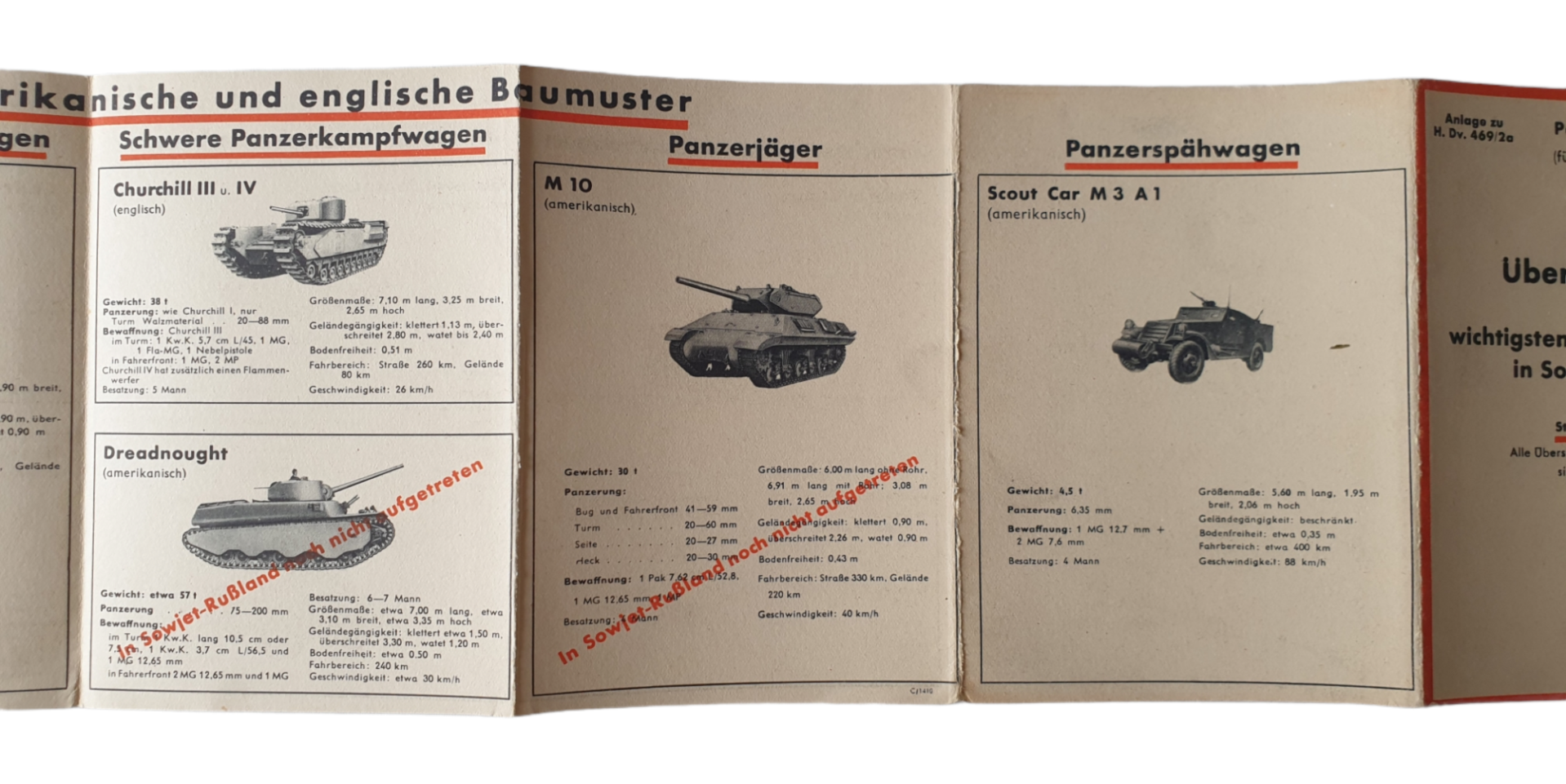 Deze boekjes werden gebruikt door Duitse (panzer) soldaten om te leren welke soorten tanks er bestonden en wat de verschillen zijn. Deze is specifiek voor Sovjet tanks.