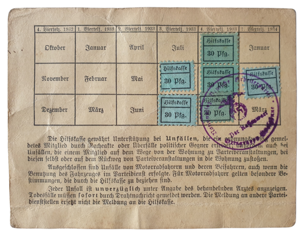 Document - NSDAP Quittingskarte Oldenburg 1933