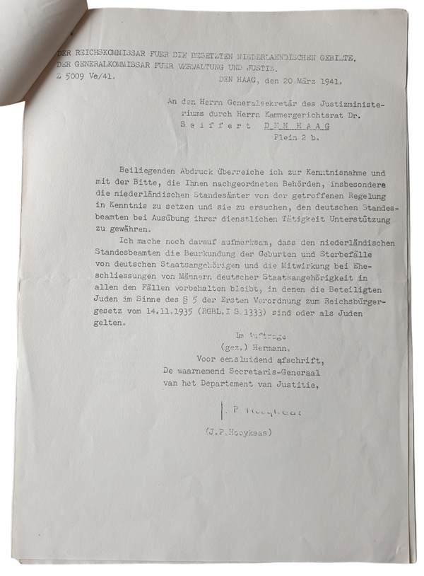 Document - German-born baby's in the Netherlands. These documents state that when a baby from a German (with a Dutch woman) that their parents are forced to marry each other. These documents were sent to Krimpen aan den IJssel.
