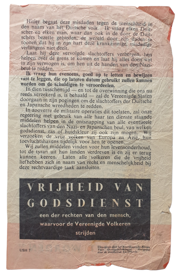 Amerikaans pamflet voor Nederland met pamfletcode USH 7 ''President Roosevelt''