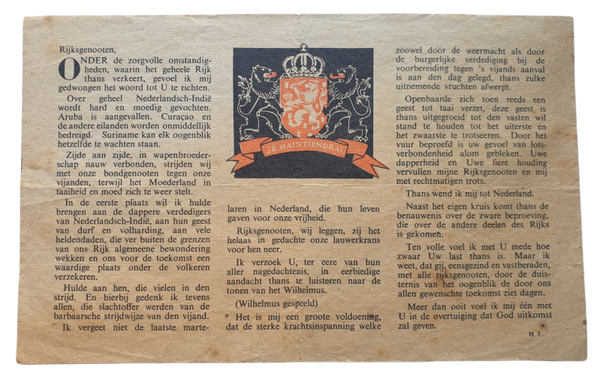 British leaflet for the Netherlands with leaflet code H 7 ''Toespraak van H.M. de Koningin'' (1942)