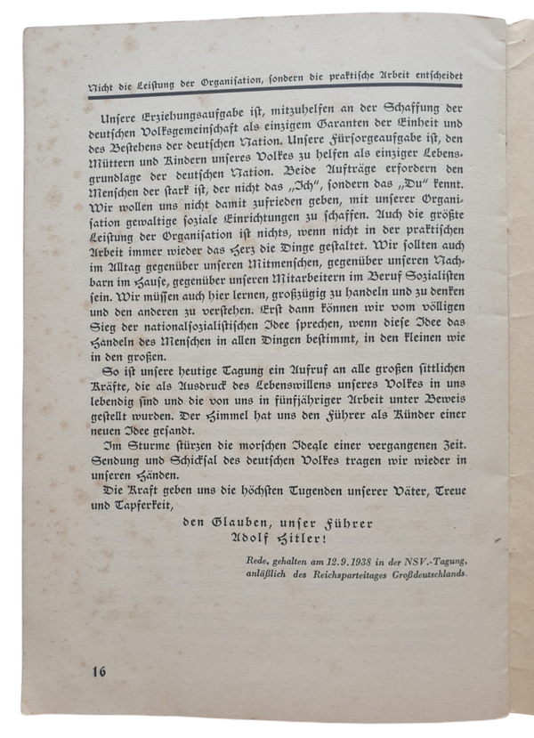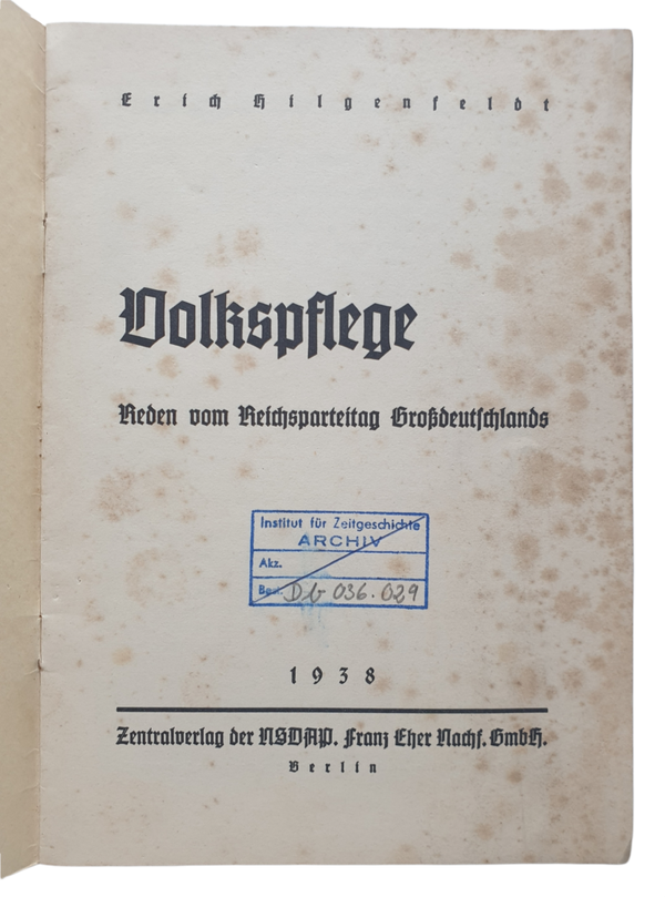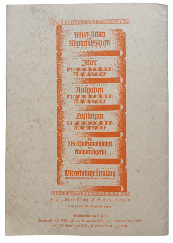 NSV Brochure - Volkspflege Reden vom Parteitag Grossdeutschlands, Erich Hilgenfeldt (1938)