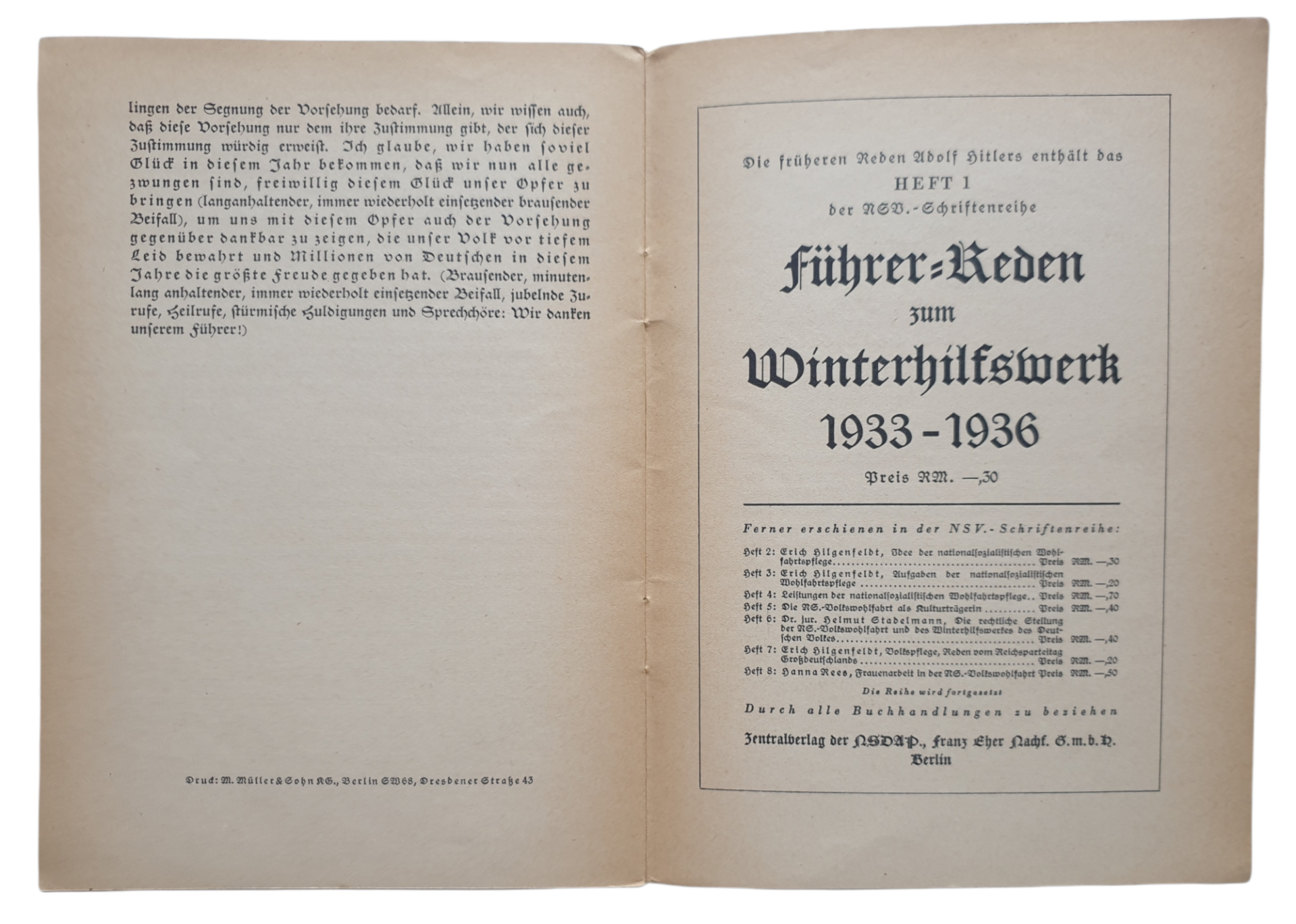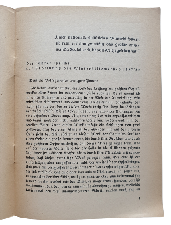 Brochure - Führer Reden zum Winterhilfswerk 1937 und 1938