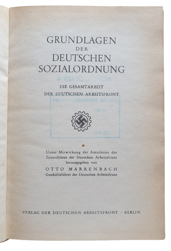 Book - Grundlagen der Deutschen Sozialordnung Die Gesamtrbeit der Deutschen Arbeitsfront, Otto Marrenbach (1942)