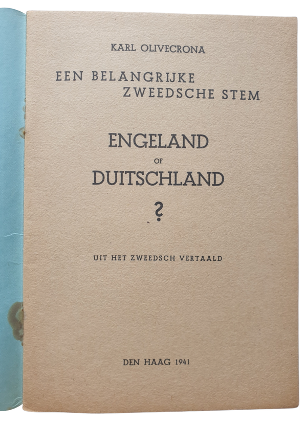 Brochure - Engeland of Duitschland?, Karl Olivecrona (1941)