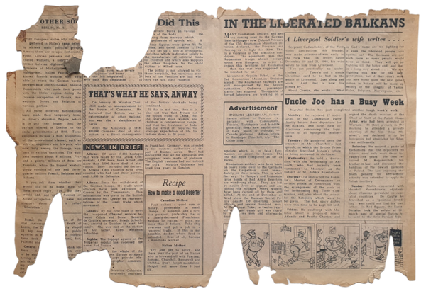 Duits pamflet voor Engeland ''The Other Side number 6''. Dit pamflet is afgeschoten met een V1 naar Engeland. Zeer fragiel.