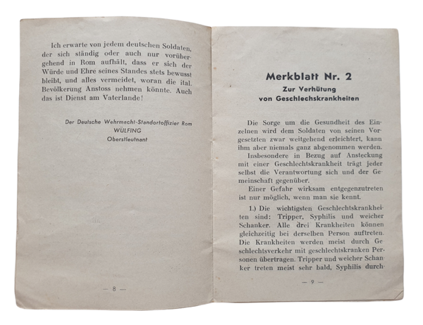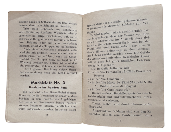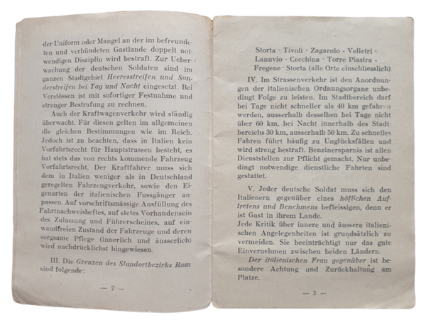 Merkblatt Nr 1. - Für den Deutschen Soldaten in Rom, Rome, Italy (1942)
