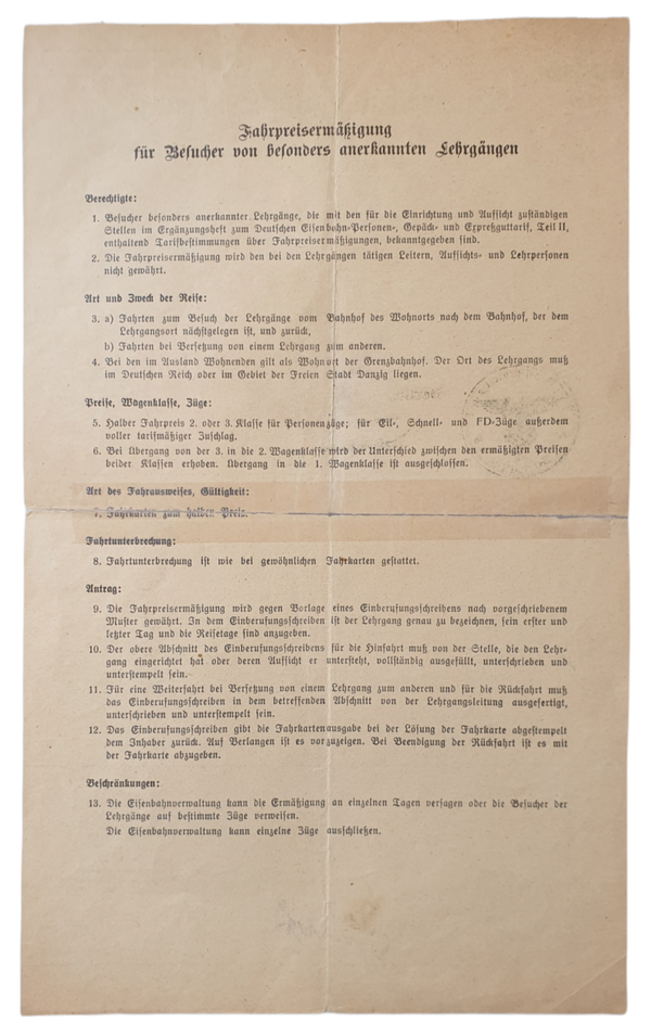 Document - Einberufung zum Lehrgang, Kassel Berlin (1938)