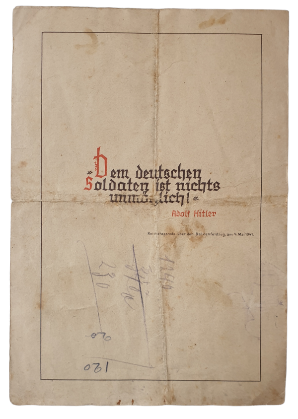 Document - Balkanfeldzug Der 12. Armee