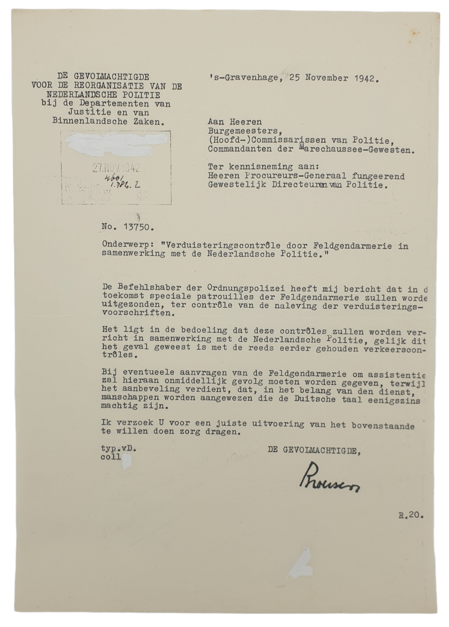 Document - Verduisteringscontrole door de Nederlandse politie met de Feldgendamerie