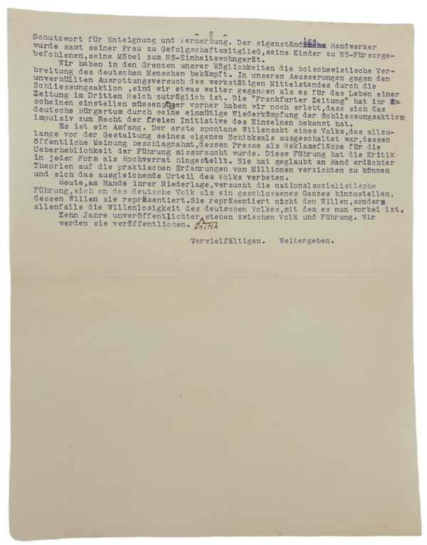 Original WW2 German Document - Frankfurter Zeitung article ''Unveroffentliche Kritik" (1943)