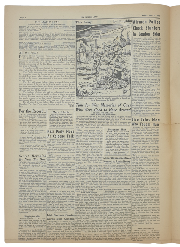 Original WW2 Canadian Newspaper - The Maple Leaf, 15th of June (1945)